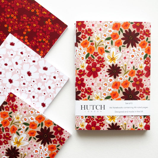Set of 3 A6 Autumn Floral Pocket Notebooks